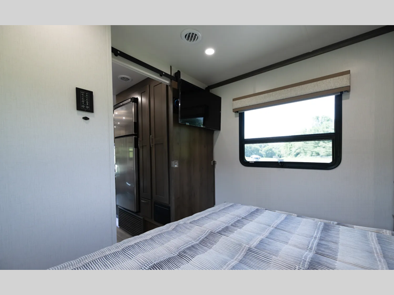 - Front Cab-Over Bunk Area with Mattress (50"x80") and Privacy Curtain