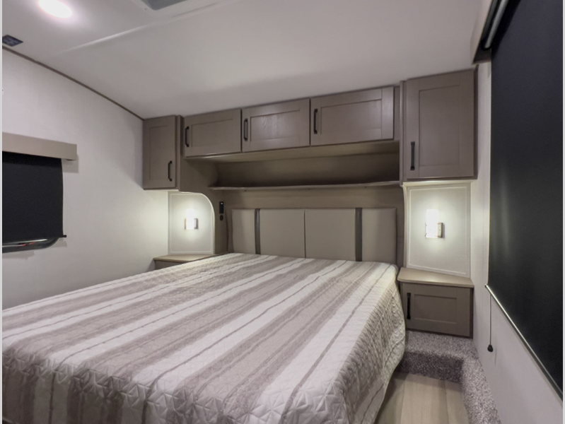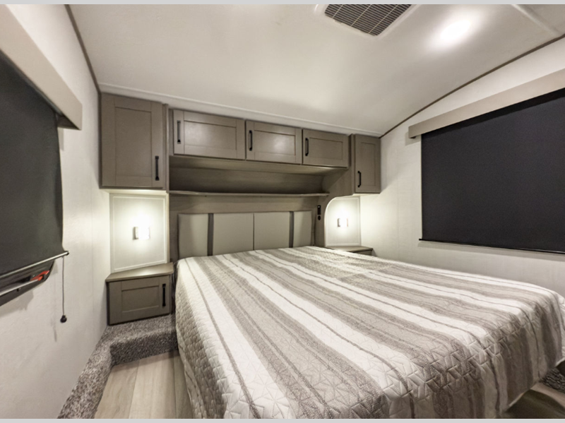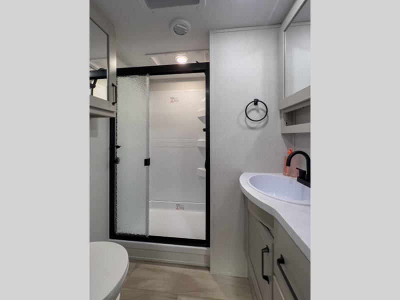 Sleeps 5 Slides 2 Length 32 ft 9 in Ext Width 8 ft Ext Height 12 ft 3 in Hitch Weight 1460 lbs GVWR 10995 lbs Dry Weight 9045 lbs Fresh Water Capacity 55 gals Grey Water Capacity 78 gals Black Water Capacity 39 gals Tire Size ST225/75R15LRE Furnace BTU 30000 btu Available Beds Queen Refrigerator Size 10 cu ft Cooktop Burners 3 Shower Size 30" x 36" Number of Awnings 2 LP Tank Capacity 30 lbs Water Heater Type On Demand AC BTU 15000 btu TV Info LR 40" LED HDTV Awning Info 10' 6" & 13' 6" One Touch Electric w/LED Lights Axle Count 2 Number of LP Tanks 2 Shower Type Walk-In Shower Electrical Service 50 amp Similar Floorplans